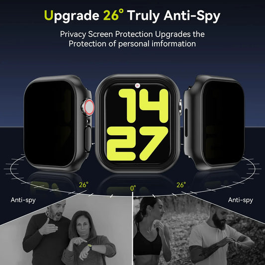 For Apple Watch 45mm 41mm 44mm 40mm Privacy Glass+Case Tempered Anti-Peeping Screen Protector For iWatch 9 8 7 6 5 4 SE 2 Cover
