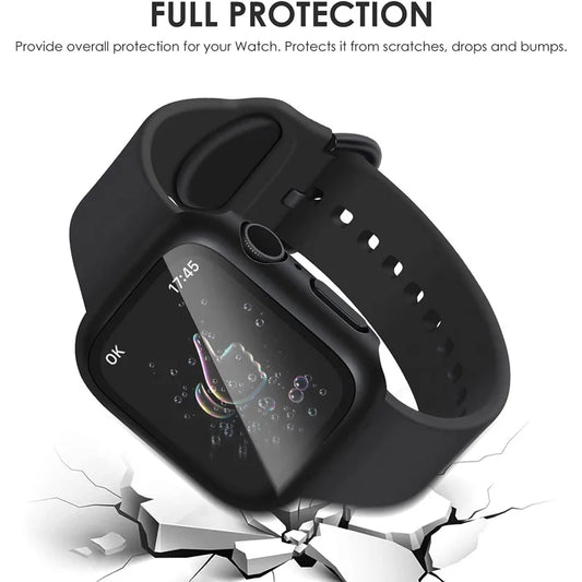 Glass+Case For Apple Watch 44mm 45mm 41mm 40mm 42mm 38mm Screen Protector Cover For iWatch Series 9 8 7 SE 6 5 4